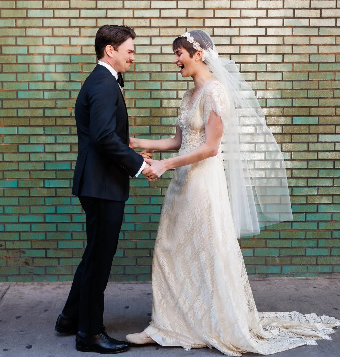 This couple started their day at the exquisite Bowery Hotel on the Lower East Side in NYC. Both Stevie Barbieri and Simple and Sultry hosted hair and makeup services, and we swooned over the bride's vintage lace dress. By the afternoon, it was time for the first look close to the Bowery Hotel's iconic entryway and clock.